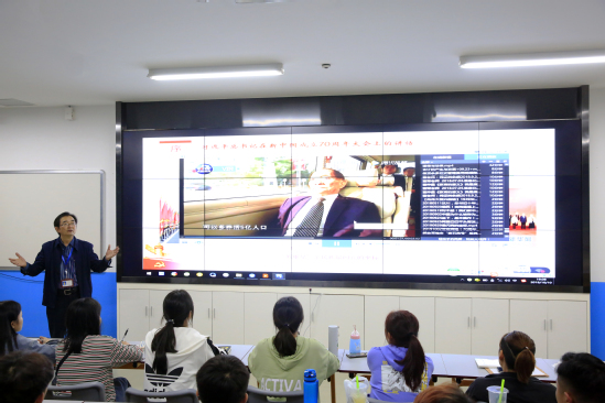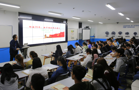 在开展“不忘初心、牢记使命”主题教育和庆祝中华人民共和国成立70周年之际,为进一步贯彻落实中共中央、国务院《关于深化新时代学校思想政治理论课改革创新的若干意见》精神,10月10日晚,校长程淮中以“辉煌70年:新中国的伟大意义”为主题,在智慧商科A楼智慧教室为19电商、19国贸移动、19市场营销等班级的同学上了一堂生动的思政课。