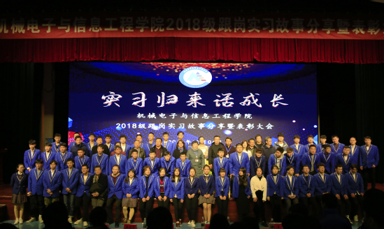 12月4日下午,机械电子与信息工程学院在图书馆多功能报告厅举行2018级跟岗实习故事分享暨表彰大会,学校杜萍副校长出席会议,合作交流处处长吕成文、学生处处长朱绍勇、教务处副处长解瑞卿、机械电子与信息工程学院党政班子、全体教师、专兼职辅导员、2018级跟岗实习优秀实习生代表、2019级学生代表参加了会议。