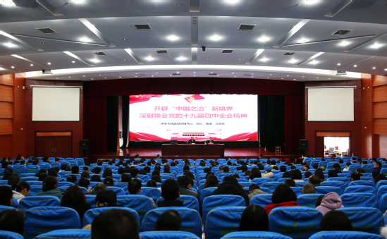 韩香云在主持报告会时强调,目前正值我校深入推进“四个重构”的关键时期,“四个重构”的根本目的,是让学校各项工作制度更加科学、更加完善,工作有制度,按制度办事,从而实现学校各项事务治理制度化、规范化、体系化。学习宣传贯彻党的十九届四中全会精神,是学校当前和今后一个时期的重要政治任务。全校上下要深入学习党的十九届四中全会精神,认真读原文、悟原理,结合“不忘初心、牢记使命”主题教育,结合学校、部门和自身工作实际,把思想和行动统一到党的十九届四中全会精神上来,为推动学校高质量发展做出新的更大的贡献。