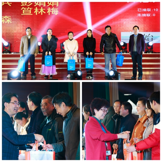 本次联欢会还设置了现场抽奖环节,一共进行两轮抽奖,分别是:“幸福、如意”两个大奖。第一轮由校长程淮中、党委副书记嵇芹珍抽取三十位幸运老师送出幸福奖,第二轮由党委书记韩香云、中国电信淮安分公司总经理梅波抽取十位幸运老师送出如意奖。