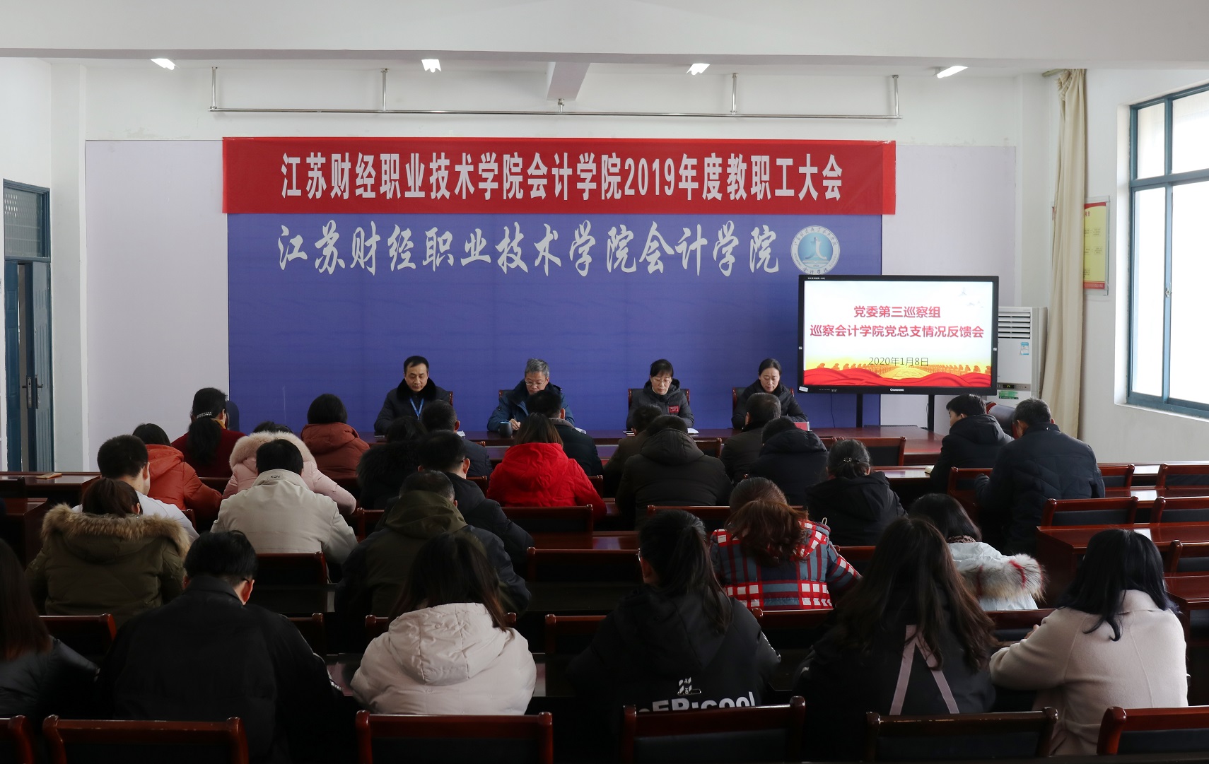 第三巡察组全体成员、会计学院全体教职员工参加会议。