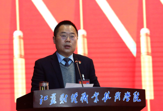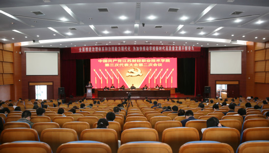 4月14日上午,在庄严的国歌声中,中国共产党江苏财经职业技术学院第三次代表大会第二次会议在学校图书馆多功能报告厅开幕。大会应到代表107名,因事因病请假16人,实到代表92人,符合法定程序。学校党委书记韩香云在大会上作党委工作报告,纪委书记王传荣作纪委工作报告。大会开幕式由党委副书记、校长程淮中主持,学校原党委书记朱敬源、学校领导班子和全体党委委员在主席台就座。