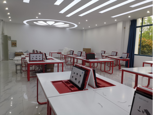 智能制造实训中心是基于江苏省现代模具智能制造与虚拟仿真实训平台建设而成,主要包括中央控制室、智能制造综合生产线、华为大数据&物联网、虚拟仿真中心、工业机器人基础应用工作站、逆向工程训练中心、双创中心和教师工作室。按照项目施工进度,将于6月中旬完成全部设备的安装与调试,今年9月智能制造实训中心就可以正式运行,届时全校学生都将在此进行为期一周的智能制造认识实习,了解当前工业应用最前言的知识信息。智能制造实训中心的建成将为我校“技术素养+管理能力”工管融合人才培养模式提供有力保障。