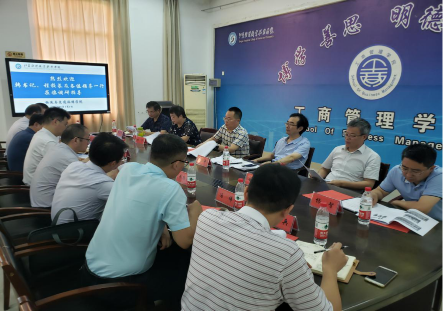 8月6日下午,学校党委书记韩香云、校长程淮中、副校长杜萍、副校长梁枫、人事处处长、党委办公室主任、招生办公室主任、学生处处长、合作交流处及教务处主要负责人一行到物流与交通旅游学院开展调研指导工作。物流与交通旅游学院主要领导和部分教师代表参加此次调研工作。