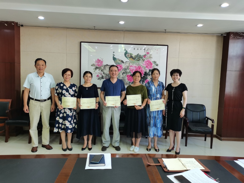最后,嵇芹珍依次向督导专家和学校兼职督导颁发了聘书并与他们合影留念。