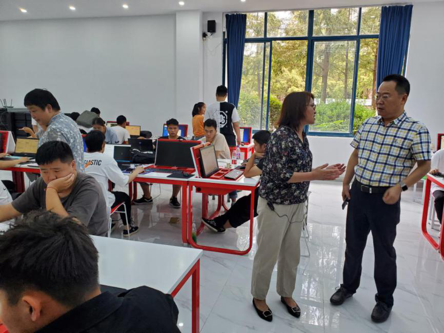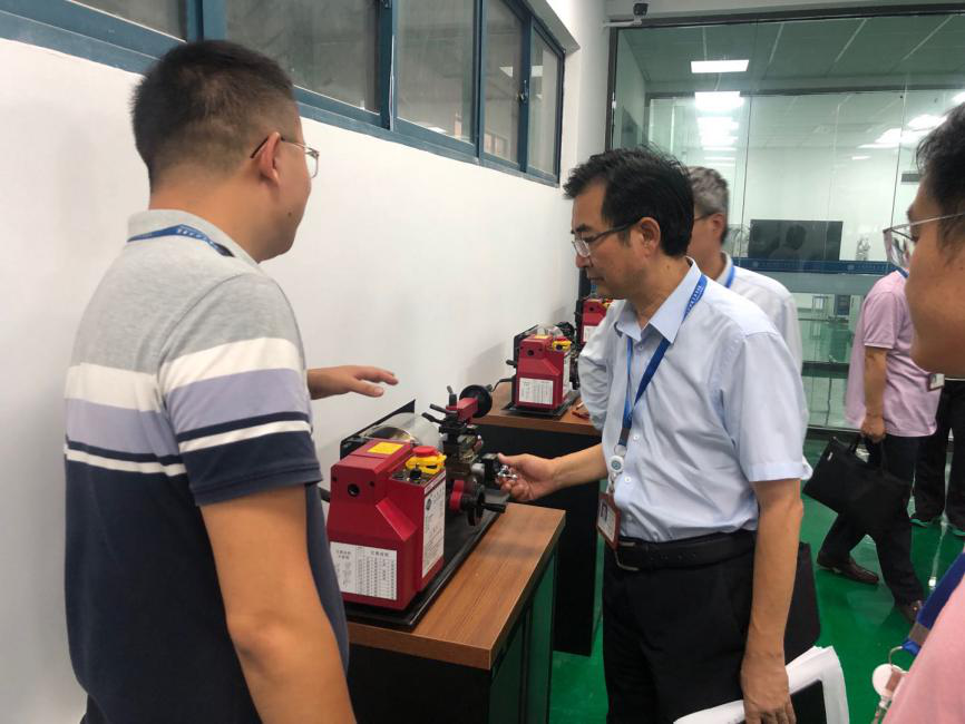 上午10时,党委书记韩香云,校长程淮中,副校长杜萍携同合作企业--南通超达模具有限公司副总经理、财务总监郭巍巍一行来到智能制造综合实训中心观摩教学开展情况。