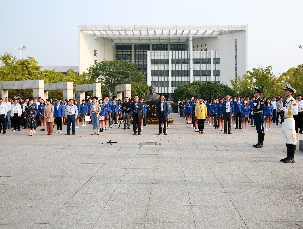 为热烈庆祝中华人民共和国成立71周年,增强广大师生党员对国家和民族的自豪感和向心力,展现全校师生党员良好的精神风貌。9月30日,在学校翔宇广场,全体校领导、党委委员、各部门、二级学院党政主要负责人、第四期中青班全体学员、教师、学生党员代表等,迎着清晨的第一缕阳光,庄重地参加了 “迎国庆·升国旗·唱国歌”主题活动。党委副书记嵇芹珍主持活动。