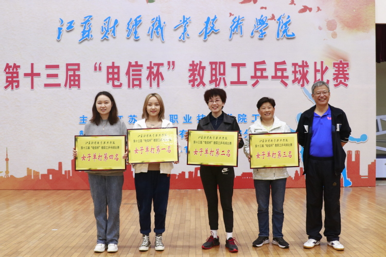 学校工会主席郭德怀宣布比赛成绩。经过紧张激烈的角逐,机关一队获得男子团体第一名,后勤工会分会获得男子团体第二名,机关二队获得男子团体第三名,智能工程技术学院分工会获得男子团体第四名,校领导队获得男子团体第五名,物流与交通旅游学院分工会获得男子团体第六名。王利国、程淮中、朱刚、冯伟、季云祥、王凯分获男子单打第一至第六名。李震宇、嵇芹珍、陈青云、徐敏分获女子单打第一至第四名。