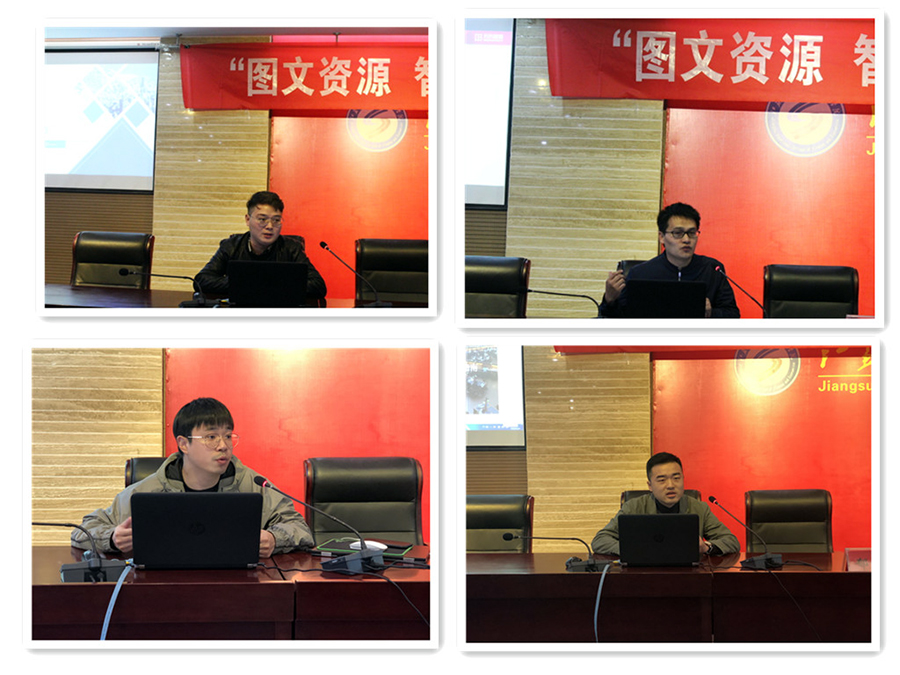超星企业培训讲师周姊杰介绍了超星系列电子资源及获取途径,重点对读秀、超星搜索、超星视频、超星移动图书馆进行操作演示。百度文库江苏省区域销售经理周滔介绍了百度文库高校版与普通版的区别,对应用型教学素材库使用指南作了详细汇报。知网企业培训讲师樊轶轩经理重点对CNKI中外文献统一发现平台“全球学术快报”的使用作了演示,对“知识矩阵”、“智能引导”、“个性化服务”等进行详细介绍。万方知识服务平台讲师刘海平经理重点介绍了万方数据知识平台、万方选题、万方科慧等平台使用技能,值得一提的是万方科慧汇聚了中、美、英、日等近20个科技强国、近200个政府机构/国立科研机构、非营利性组织资助的510多万科研项目,逐步实现科研项目与科技成果的关联,可以为教师提供项目申报指南、科技检索项目检索、科技辅助、知识关联等服务。