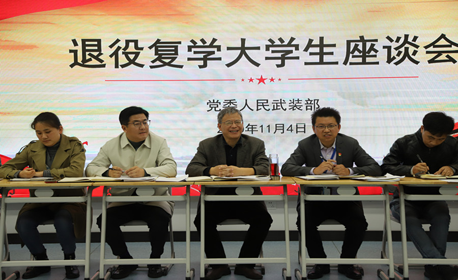 11月4日下午,我校在智慧商科召开了退役复学大学生座谈会。党委委员、副校长梁枫,党委学工部(处)、人武部主要负责人出席会议并讲话,退役复学大学生参加了此次会议。会议由人武部部长朱绍勇主持。