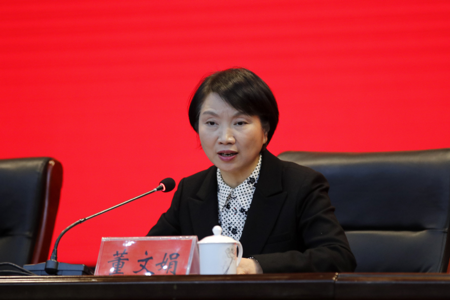 △省委第十一巡视组负责本轮巡视全面工作的副组长董文娟作动员讲话