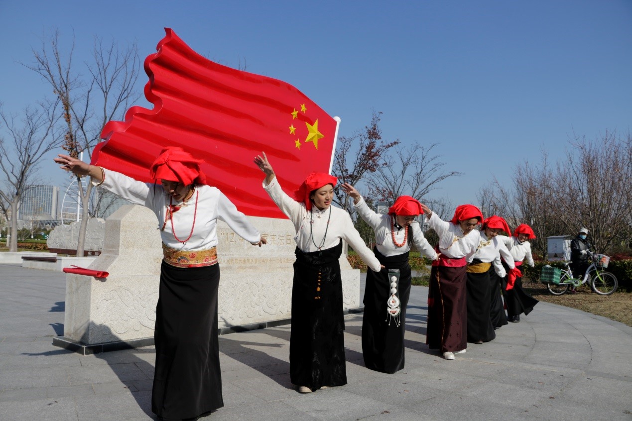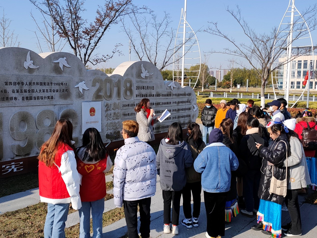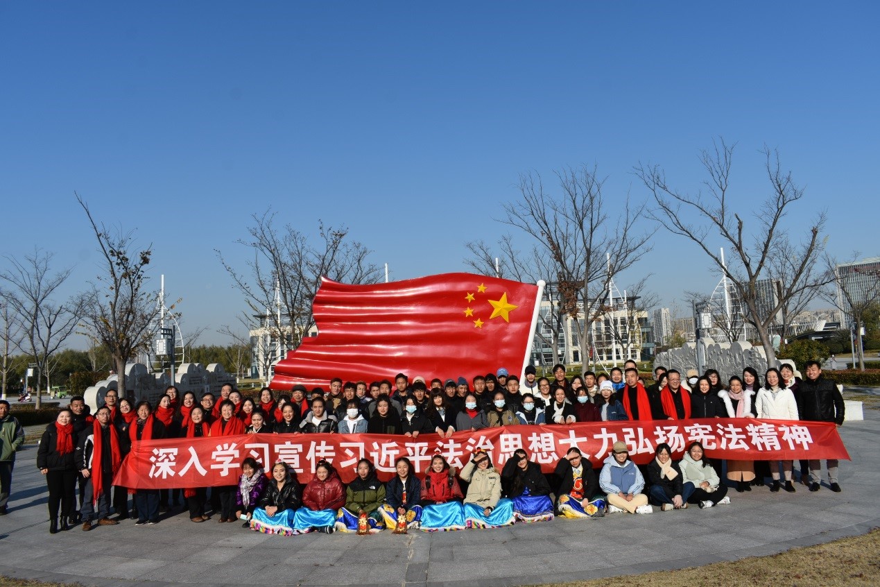 宪法是国家的根本法,是治国安邦的总章程,是党和人民意志的集中体现。2020年12月4日,在我国第七个宪法日来临之际,法文学院与江苏群汇知缘律师事务所在淮安市宪法主题公园,围绕“深入学习宣传习近平法治思想大力弘扬宪法精神”的主题,举行了以“拥护祖国统一、加强民族团结”为主要内容的,群汇知缘西藏班宪法日现场主题教学活动。江苏财经职业技术学院党委副书记嵇芹珍,淮安市律师协会会长、我校兼职教授张沛生,淮安市律师协会副会长、江苏群汇知缘律师事务所主任、我校产业教授朱桂前,学校老干部处负责人以及长期以来关注法文学院发展、关心学生成长成才的多名离退休老干部,法律文学院教师代表、江苏群汇知缘律师事务所律师代表、群汇知缘西藏班全体同学、法援中心学生代表等近百人参加活动。