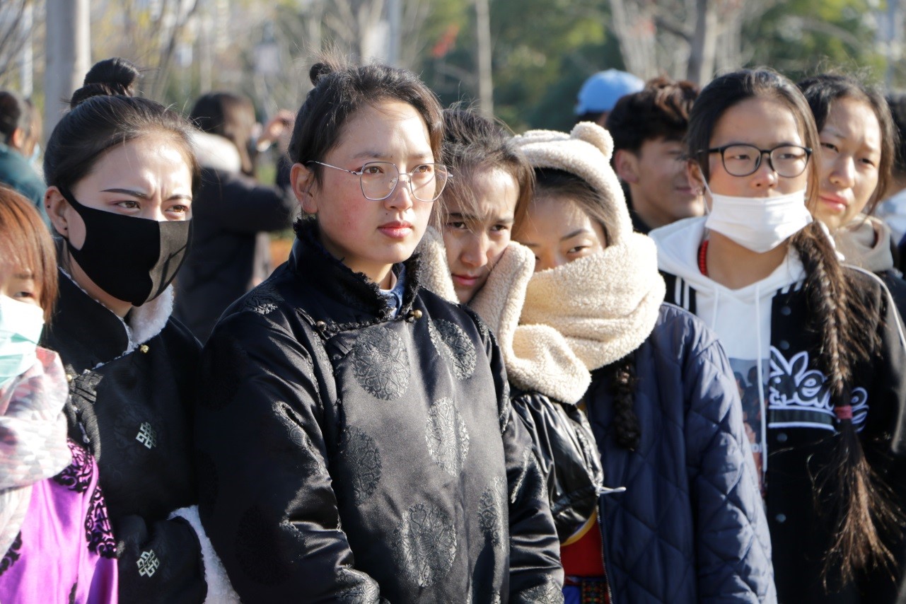 最后的民族团结大联欢环节,西藏班的同学们带来他们自编自导的优美歌舞。同学们不畏寒冷,穿上民族盛装,用热情的舞蹈和优美的歌声歌颂祖国、歌颂民族团结。法文学院的教师和群汇知缘律师事务所的律师们合唱的一首《我和我的祖国》,表达了各位老师和律师导师们对祖国深深的热爱,表情中更是流露出对群汇知缘西藏班同学们的喜爱和期望。