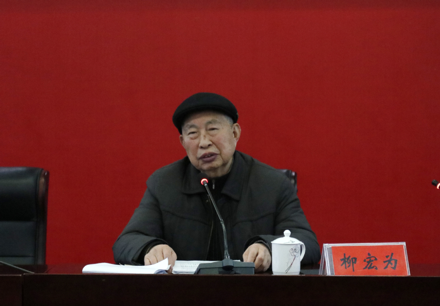 图为中共淮安市委党史工作办原主任、淮安市党史学会会长柳宏为作“翔宇思政名师工作坊”开“坊”报告