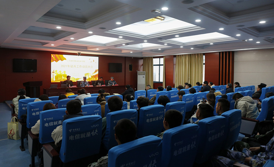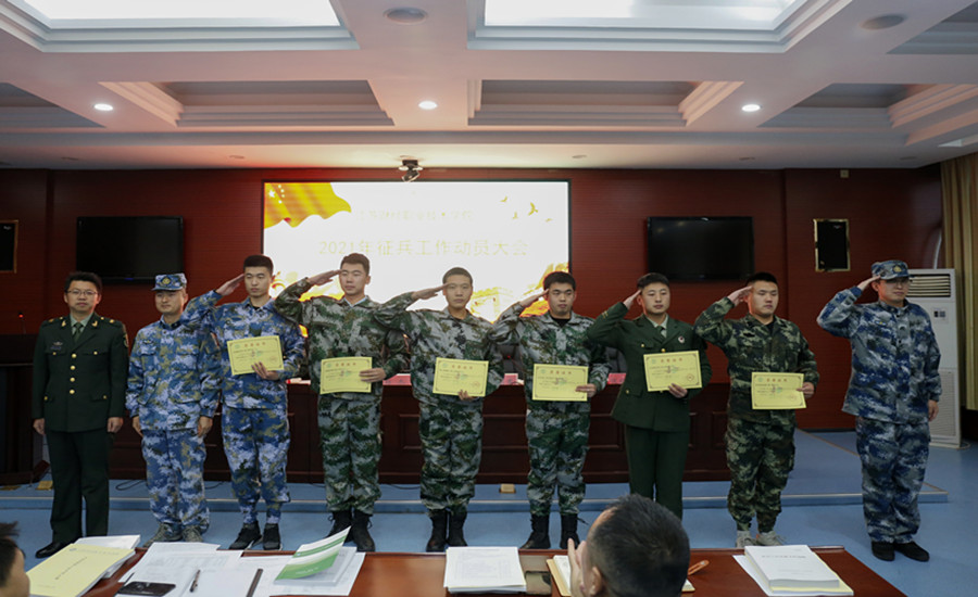 为加强征兵政策宣传,做好2021年大学生应征入伍工作,12月22日下午,党委人武部在明德楼5楼会议室举行“2021征兵工作动员大会”。洪泽区委人武部郑杰、张祎曙,学校人武部主要负责人,二级学院党总支副书记、专职辅导员和全体毕业班兼职辅导员、军训受表彰的优秀指导老师和先进个人参加了此次大会。会议由党委人武部部长朱绍勇主持。