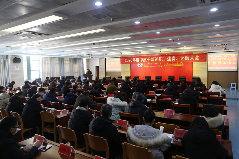 2021年1月11日下午,学校党委在图书馆第一会议室召开2020年度中层干部述职、述责、述廉评议会,校党委副书记嵇芹珍主持会议,学校领导、党委委员、纪委委员,全体中层干部参加会议。