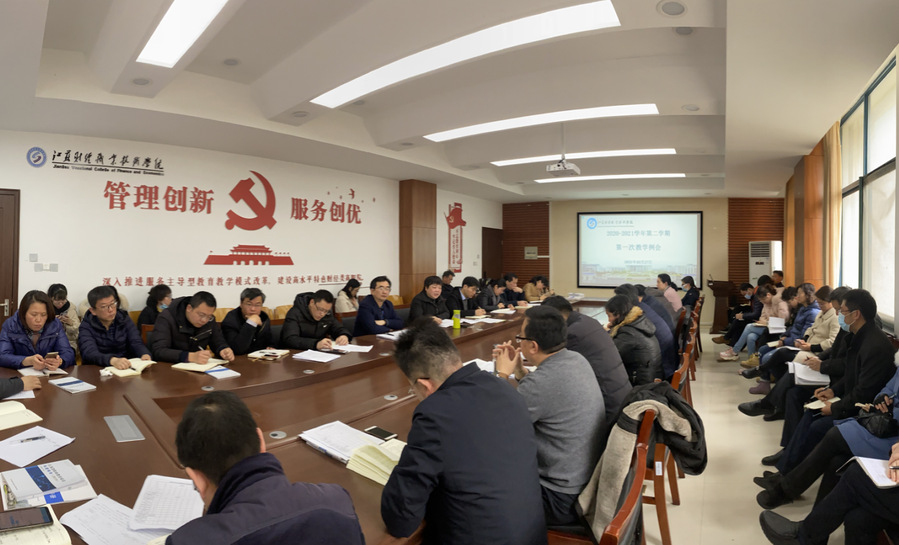 为迎接新学期的到来,保障各项工作顺利有序地开展,学校于2月27日上午在明德楼112会议室召开2020--2021学年第二学期第一次教学例会。校长程淮中、副校长杜萍和教务处、科技处、合作交流处、发展规划处(质量管理办公室)、教风学风督导办公室、智慧商科、信息化建设管理处等部门负责人,以及各二级教学单位院长(主任)、副院长(副主任)、教师代表参加此次会议。会议由杜萍副校长主持。