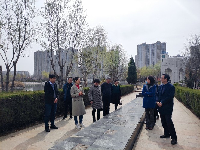 图为参观黄河水利职业技术学院校园文化景观
