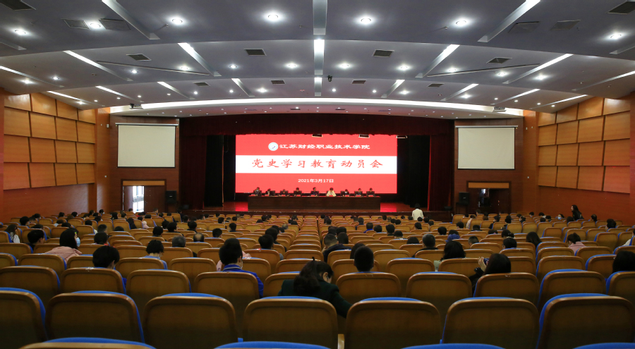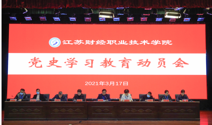 3月17日,学校召开党史学习教育动员大会,深入学习贯彻习近平总书记在党史学习教育动员大会上的重要讲话精神和江苏省党史学习教育动员大会精神,部署学校党史学习教育工作。会议由学校党委副书记嵇芹珍主持。