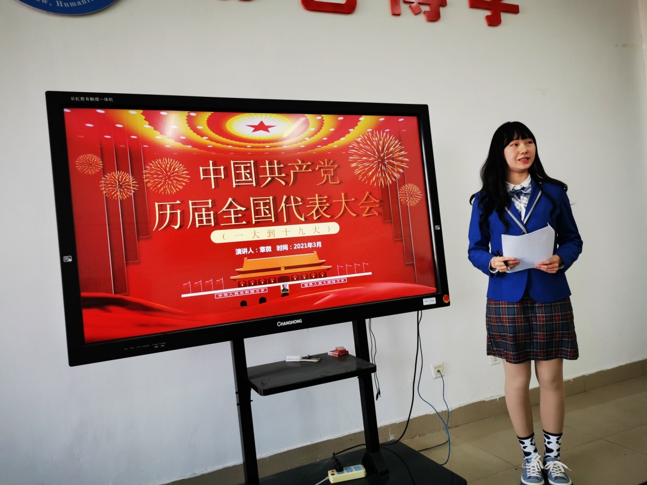 最后,由宣讲团学生试讲,章薇同学对中国共产党“一大”到“十九大”历次会议的基本情况和重要意义进行了讲解。与会领导对宣讲员的试讲进行点评和指导。