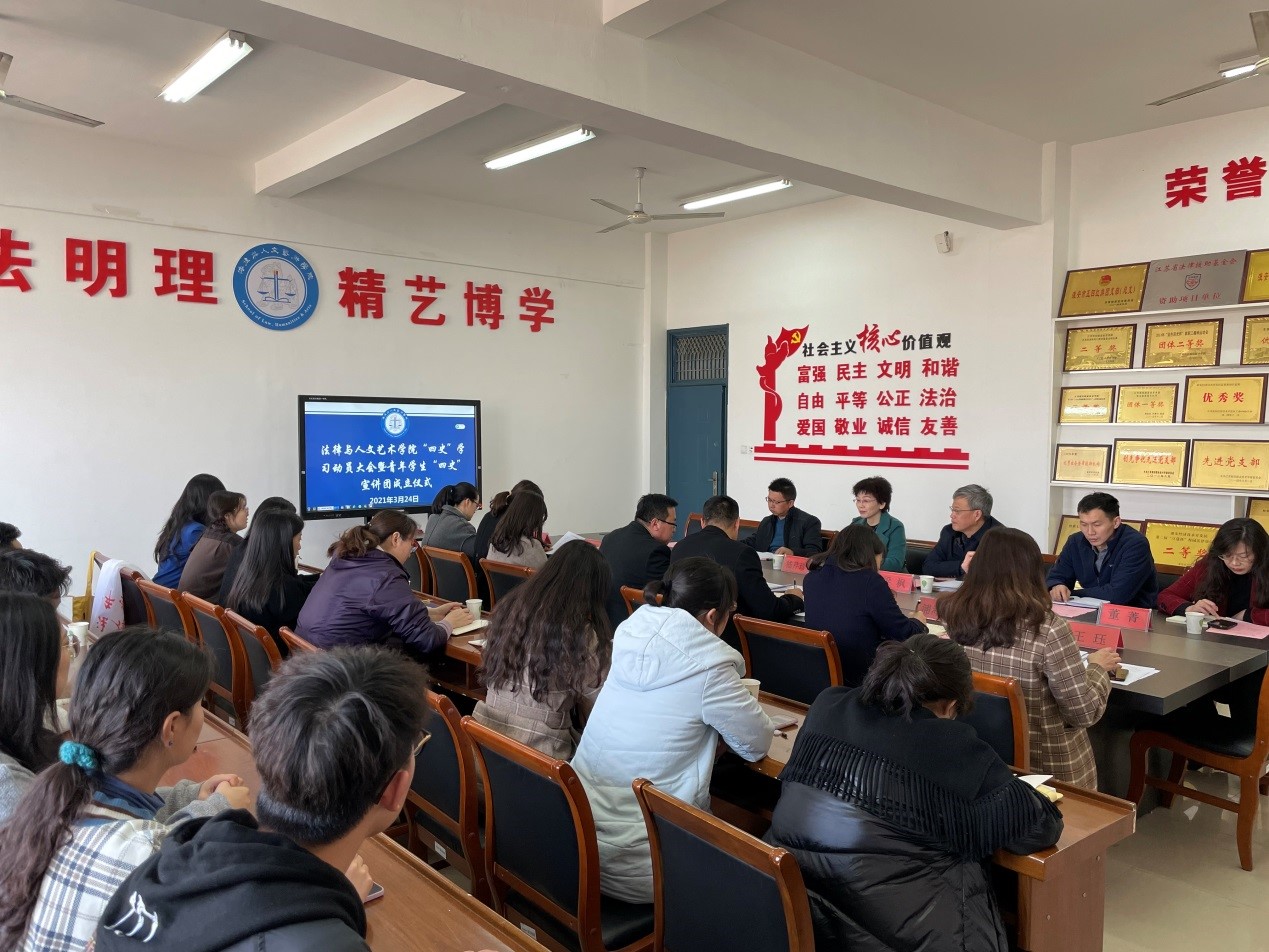 3月24日下午两点,法文学院青年学生“四史”宣讲团成立大会在学院会议室隆重召开。学校党委副书记嵇芹珍、副校长梁枫、学生处、宣传部、团委主要负责人,以法文学院班子成员、全体党员参加此次活动。