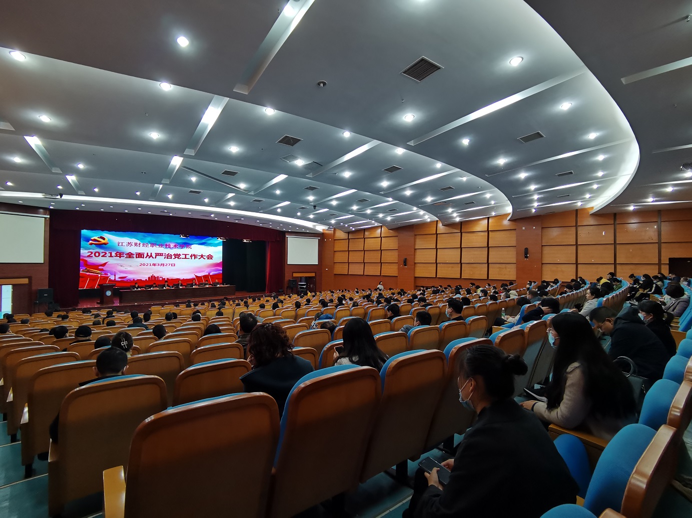 3月27日上午,学校2021年全面从严治党工作大会在图书馆多功能报告厅举行。全体校领导、党委委员、纪委委员、中层干部、各党总支委员、各党支部书记、委员、特约监察员、各职能部门和直属单位全体工作人员、教务员和专职辅导员参加大会,会议由党委副书记、校长程淮中主持。