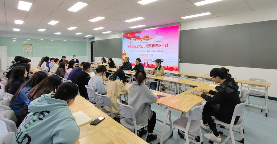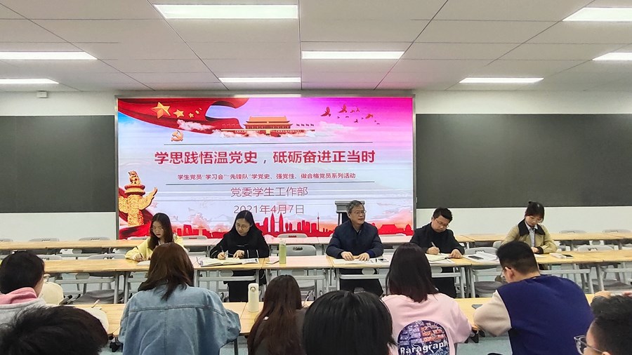 今年是中国共产党成立100周年,为深入学习贯彻习近平总书记在党史学习教育动员大会上的重要讲话精神,全面回顾党的光辉历程、歌颂党的丰功伟绩,从党的百年伟大奋斗历程中汲取继续前进的智慧和力量,我校学生党员“学习会”“先锋队”于4月7日下午在智慧商科开展学党史、强党性、做合格党员系列活动。学校党委委员、副校长梁枫,党委学生工作部负责人,学生党员“学习会”“先锋队”成员参加本次活动。活动由党委学生工作部部长朱绍勇主持。