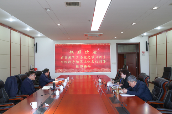 4月15日下午,省委教育工委派出第五指导组来校指导调研党史学习教育工作。校领导程淮中、嵇芹珍、王传荣和校党史学习教育领导小组办公室全体成员出席党委主要负责同志见面会,校领导嵇芹珍、梁枫、王丹出席校行政领导调研座谈会,部分党总支书记、学生党支部书记代表分别参加了座谈会。