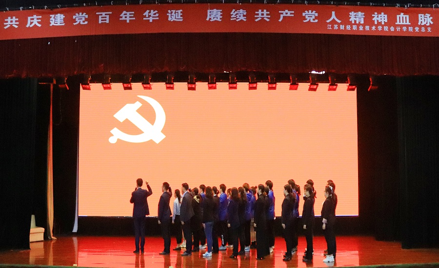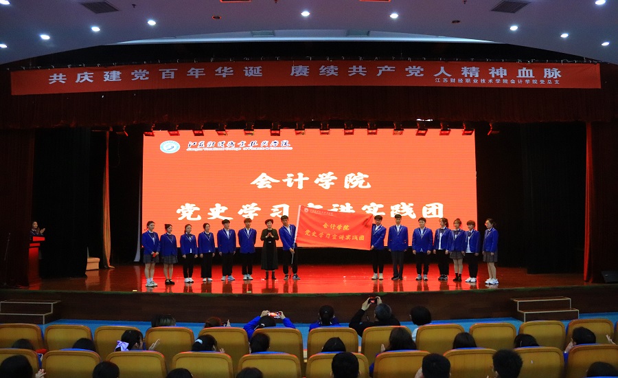 为全面推动广大师生学习百年党史,喜迎百年党庆,学校党委副书记嵇芹珍应邀为会计学院党史学习宣讲实践团授旗。在鲜红党旗下,会计学院院长张卫平带领党员代表,高举右拳,重温入党誓词,坚定了大家入党初心和学好党史的意志。