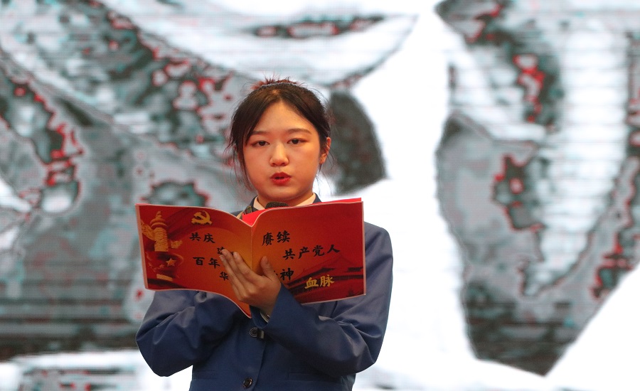 在活动中,学生党员徐梦婷同学与大家一起分享了周恩来总理可歌可泣的红色故事;通过在线视频,学生党员抗洪先进志愿者徐欣同学谈了“学百年党史 做时代新人”的心得体会。活动在诗朗诵《赓续共产党人精神血脉》后圆满落下帷幕。