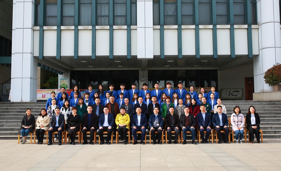 最后,所有嘉宾在图书馆楼前与大数据与审计专业的学生合影留念。签约仪式结束后,程淮中陪同嘉宾参观了校园及智慧商科综合实训中心等实训场所。