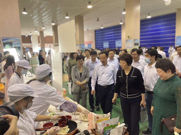 启动仪式后,王红红等领导来到财院“电商直播带货”和“烘焙社”两个学生社团展台前,耐心的询问电商直播社团的运营情况,看到学生们制作的糕点,忍不住先品尝起来,对我校学生社团的表现予以高度评价。