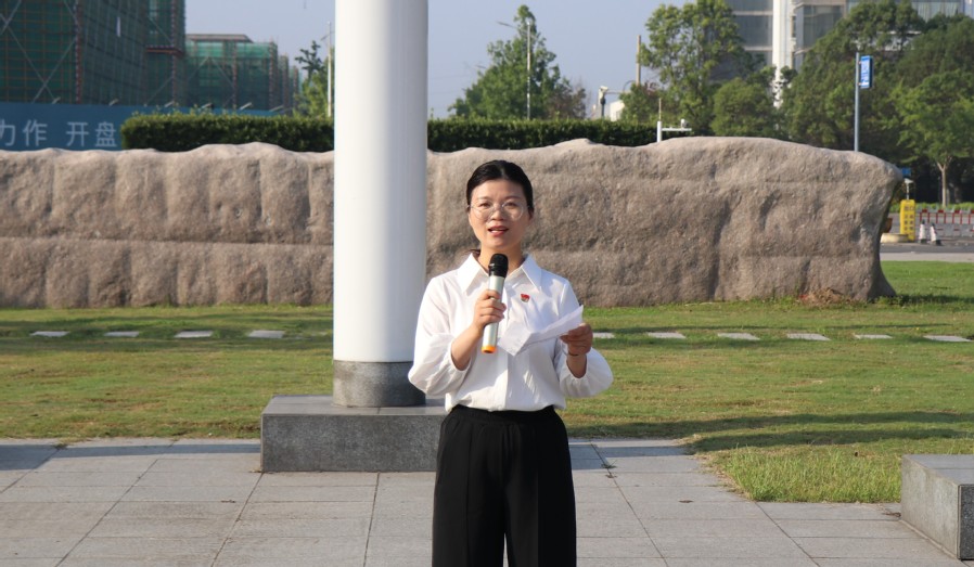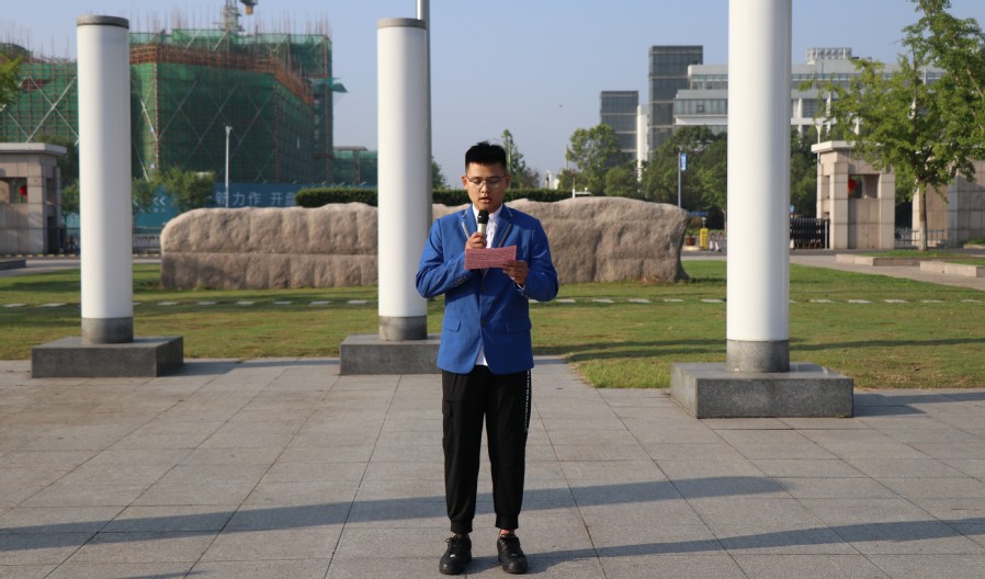 紧接着,学生党员代表黄政翔同学在国旗下发言。他号召同学们要牢记习近平总书记的教诲,坚定理想信念、树爱国心、立爱国志;要不负青春韶华,坚定不移地用奋斗去践行中华民族伟大复兴的百年约定;要勇于砥砺奋斗,把责任扛在肩上,把根基扎进祖国大地。