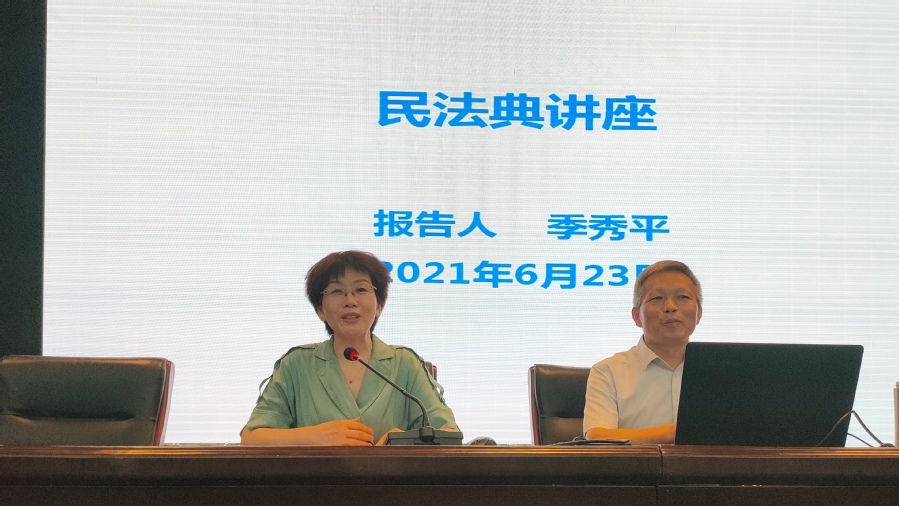 6月23日下午,益新大讲堂十一讲在图书馆550会议室如期开讲,淮阴师范学院季秀平教授为广大师生带来了一场民法典讲座。讲座由学校党委副书记嵇芹珍主持,法文学院全体教师、19级和20级法律事务的全体学生共计四百余人参加此次讲座。
