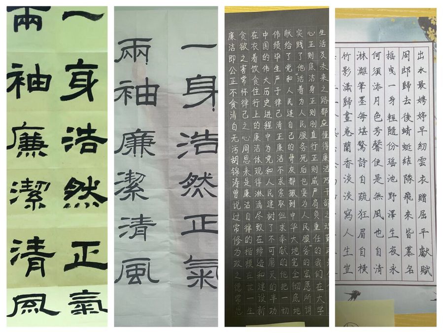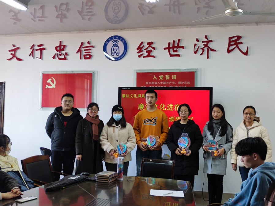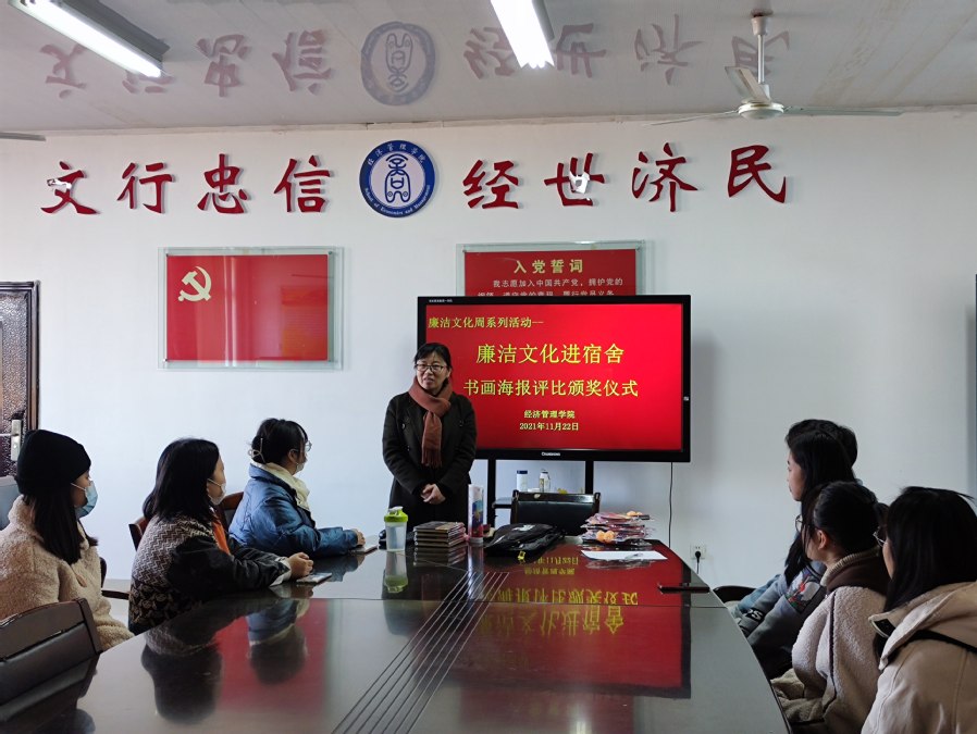 为了大力弘扬廉洁文化,筑牢大学生清正廉洁的思想道德防线,持续营造风清气正的校园廉洁文化氛围,经济管理学院11月16日下午5:00,在西五西六楼下辅导员工作室开展“廉洁文化”进宿舍字画等作品大赛。学院党总支副书记黄海梅、学生党支部书记于慧婷、分团委副书记纪彤、部分兼职辅导员和学生代表参加了本次评比活动。
