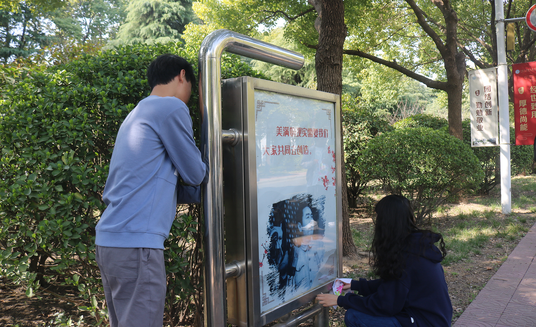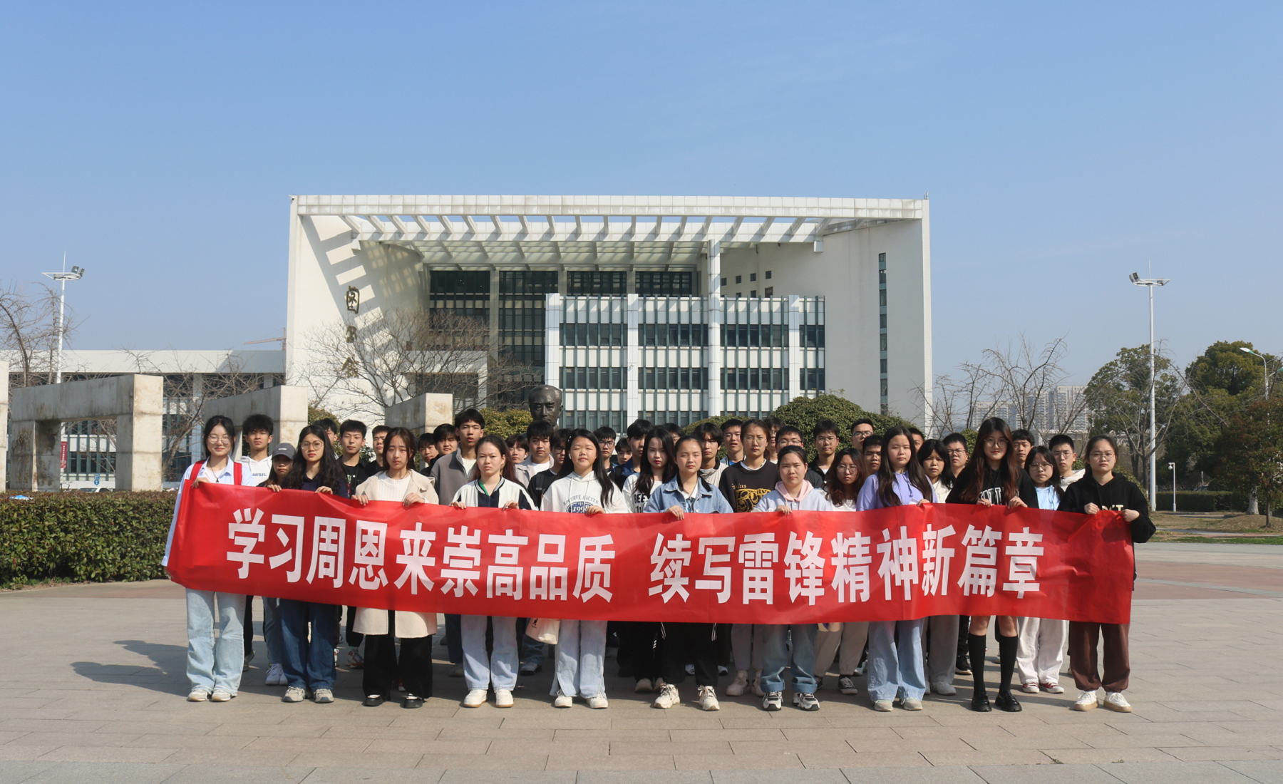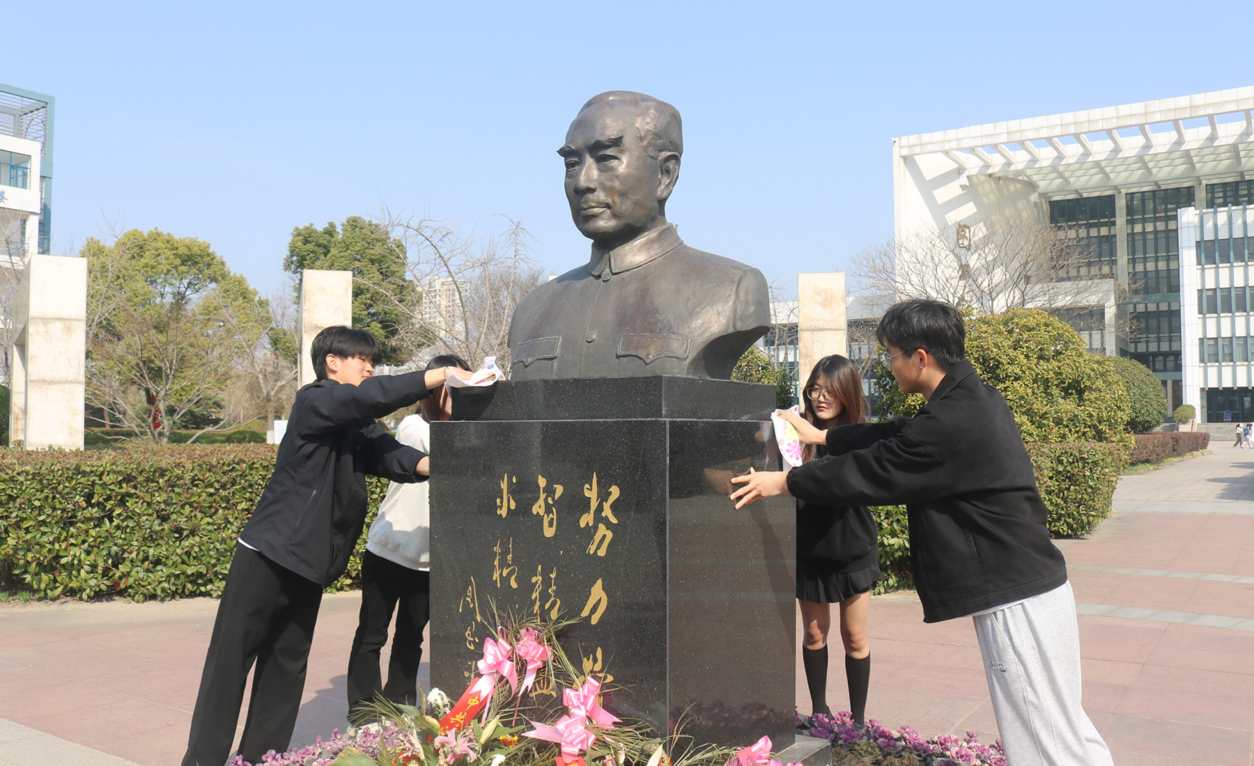 在翔宇广场,同学们瞻仰周恩来总理像,为铜像擦洗除尘,清洁广场环境,让初春的翔宇广场焕然一新。“在擦拭铜像时,周总理坚定不移的眼神在我心中点燃了一把火,为中华之崛起而读书的不息之火!”班长马先钢说道。全班同学沿校园主干道擦拭周恩来灯箱,同学们一边擦拭,一边学习讨论灯箱上周总理的名言警句,用心体会灯箱内容向我们传递的红色精神,学习伟人风范。