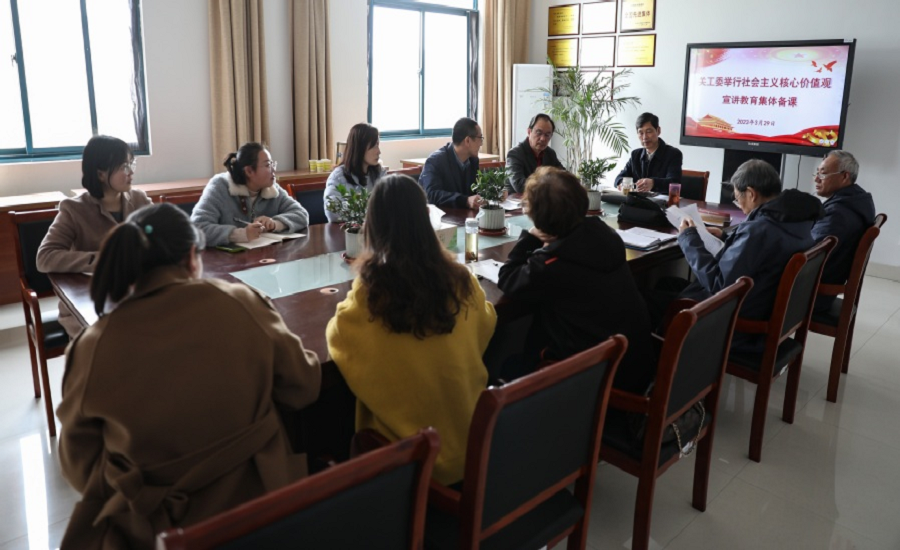 为全面贯彻落实党的二十大精神,培育和践行社会主义核心价值观,坚持立德树人,帮助青年大学生及时、准确、把握社会主义核心价值观的内涵和意义。学校关工委与马克思主义学院于3月29日下午在明德楼401会议室举行了“践行社会主义核心价值观宣讲教育”集体备课会。学校关工委副主任蒋超五、常务副主任张春、马克思主义学院党支部书记费婷婷、关工委秘书长郭富忠、委员蔡振华、周艳、马克思主义学院李舒蕊、胡爽、丁蓉蓉老师参加了集体备课。备课会由关工委秘书长王兴波主持。