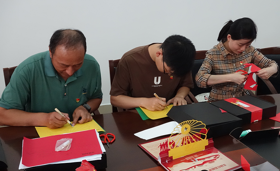 陈国强强调:“红船剪纸不是简单的手工,而是厚重的历史文化和革命情怀。”党员们宁心静气、认真专注,通过制作红船剪纸重温党的历史、体验革命情怀、传承红色基因。以亲手剪出的一幅幅精美的作品,表达对党的拥护、热爱与祝福。