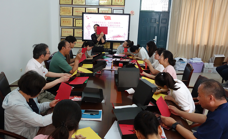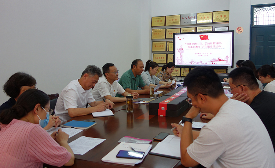 为庆祝中国共产党成立102周年,深入开展主题教育,贯彻“学思想、强党性、重实践、建新功”的总要求,基础教学部党总支教工第二党支部于6月28日下午开展了“迎接党的生日、弘扬红船精神、传承非遗文化”主题党日活动。活动由第二党支部书记王军主持,党总支书记陈国强、民革党员侍勇、知联会员朱桂平等同志应邀出席。