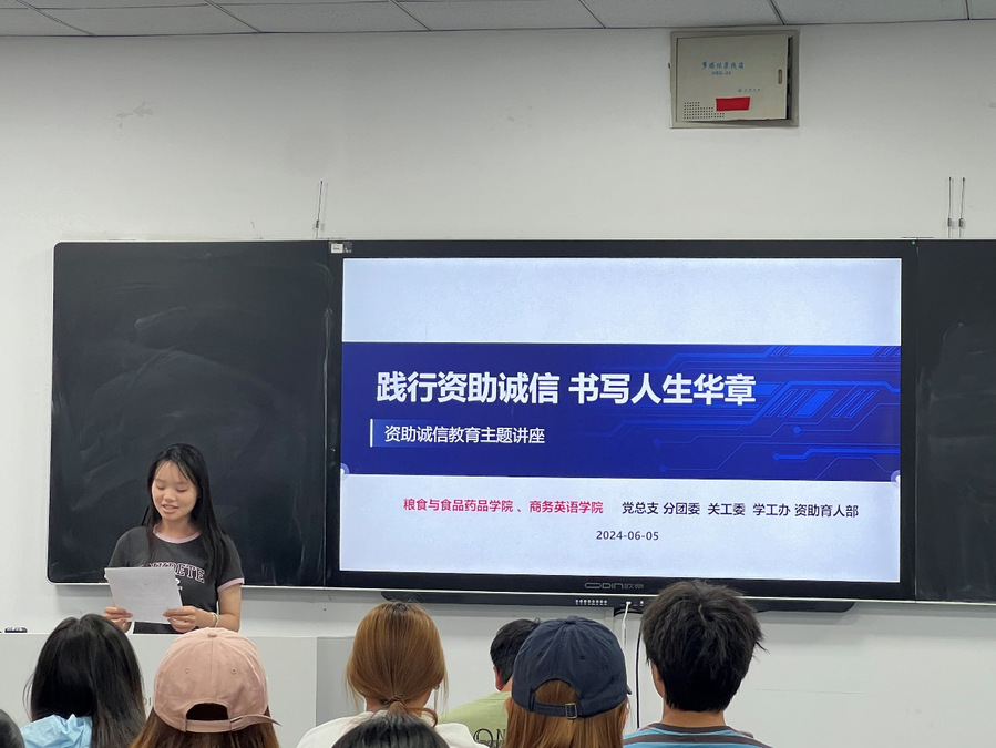 为帮助广大学生了解国家和学校的最新资助政策及各项奖助奖学金的评定标准,增强学生诚信意识和责任担当,深入推进发展型资助育人,增强当代大学生的诚信意识和责任意识。6月5日下午,粮食与食品药品学院携手商务英语学院在诚行楼417,合作举行了“践行资助诚信,书写人生华章”学生资助诚信主题讲座活动。本次讲座的主讲老师为粮食与食品药品学院姚炳明老师。