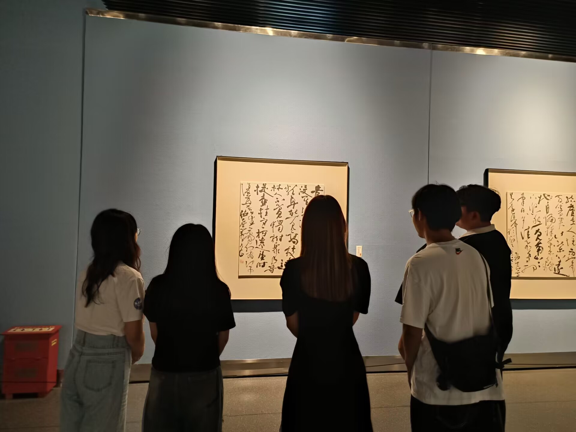 在分享会上,同学们聚精会神地聆听。此次展览的主题“奔无”寓意深远,不仅展现了两位书法家对书法艺术持续不懈的追求与深厚热爱,同时也象征着书法艺术在传承中勇于创新、在创新中持续发展的精神。经过深入的探讨和交流,同学们对书法艺术有了更加全面而深刻的理解和认识。