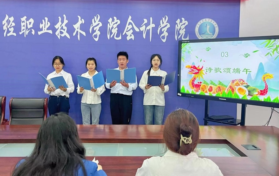 学生党员为大家朗诵《离骚》(节选)进行朗诵,在追思声中深切领悟责任担当,涵养爱国情怀,随后,支部书记尚凌凤赠送香囊给同学们,并送上端午祝福。