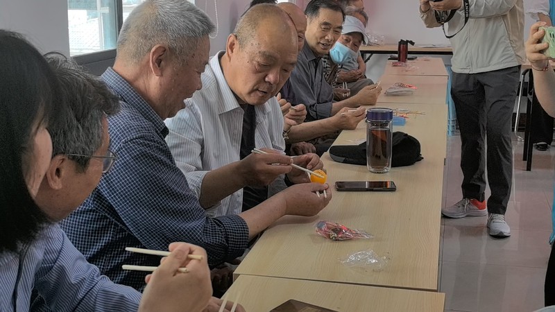 为进一步增进感情,老党员同志与翔宇社学生们进行了筷子夹乒乓球挑战。这项活动不仅考验参与者的手眼协调能力,更是考验团队之间的默契和协作。新老一代,彼此相互配合,现场笑声和掌声此起彼伏,充满了节日的氛围。活动过程中,翔宇社的学生们还发挥自身特长,为现场的老党员同志们进行了系列歌舞表演,共庆端午佳节。
