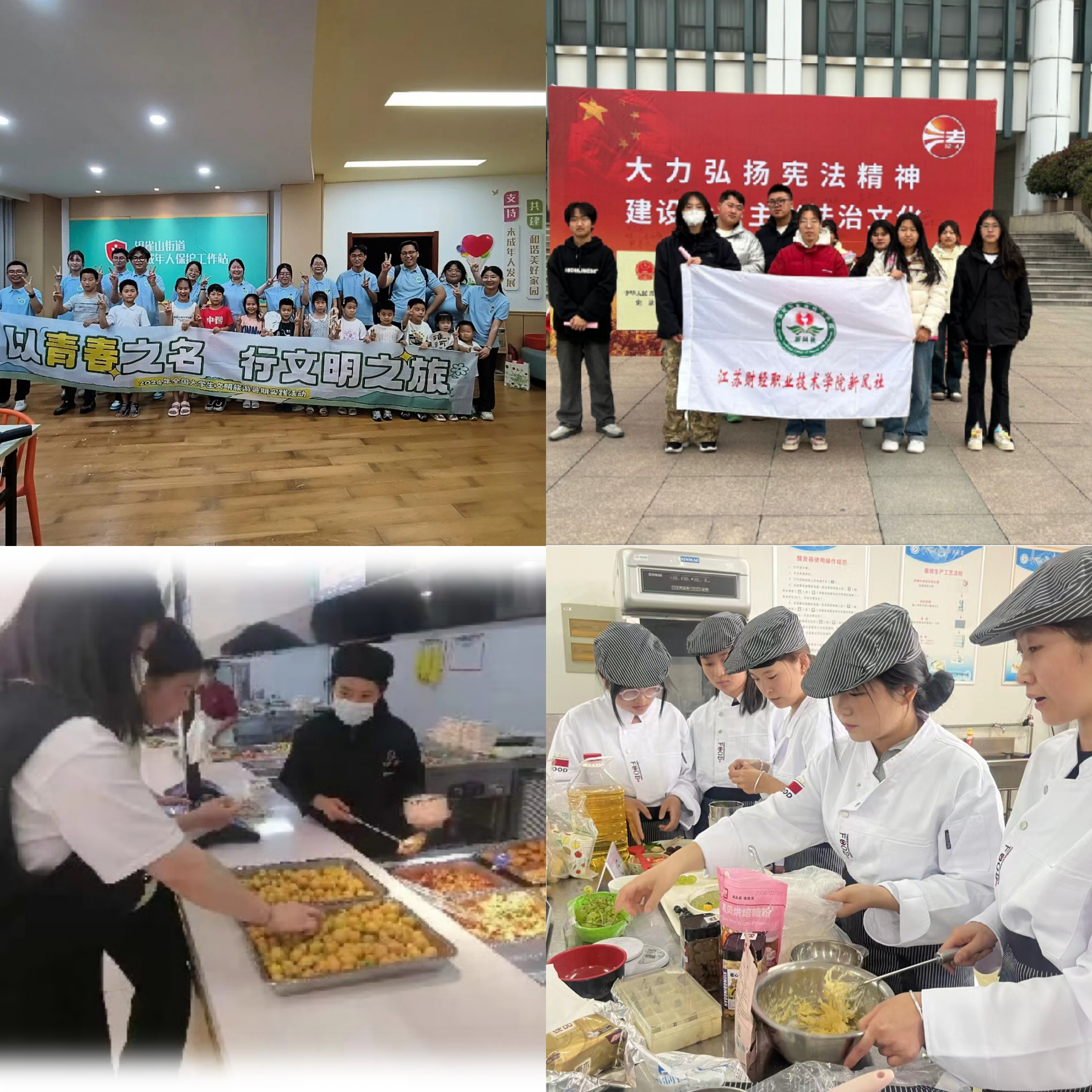 学生社团弘扬劳动精神,引导广大同学树立正确的劳动观,崇尚劳动、尊重劳动,增强对劳动人民的感情,报效国家,奉献社会。烘培社团、大学生伙食协会等社团开展了手工品制作、农场种植等活动,积极营造能劳动、会劳动、爱劳动的校园劳动氛围。红十字协会、新风社、助力淮河生态经济带发展旅行团开展了关爱儿童、淮河保护等活动,引领同学通过社会实践增长见识、增长才干、勇于奋斗、锻塑品格。
