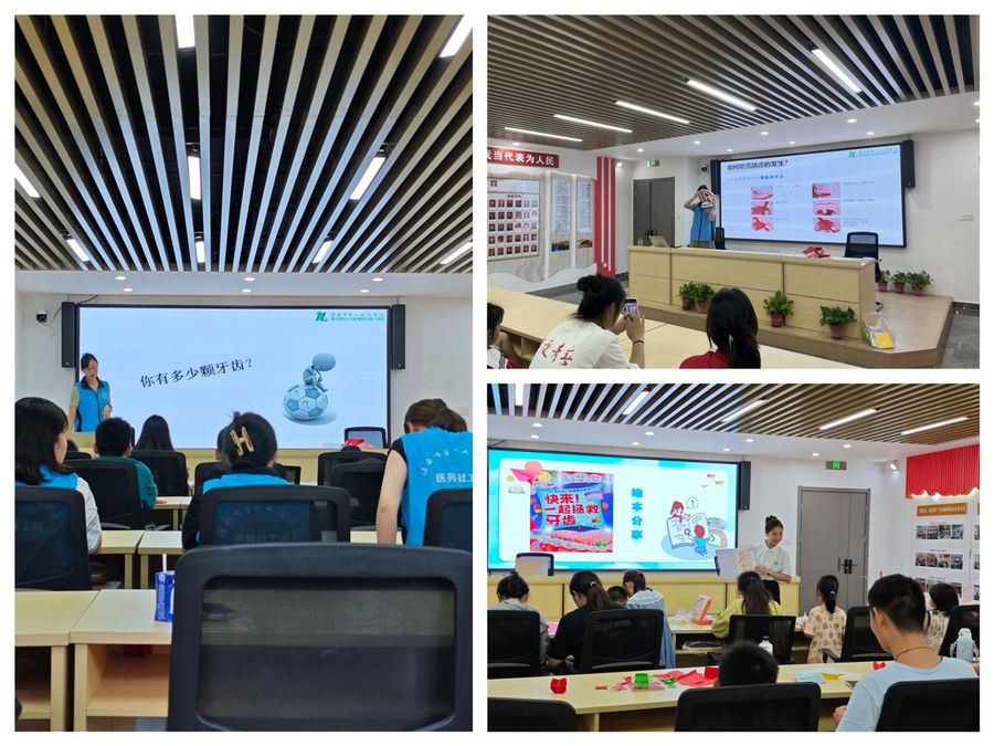 在志愿服务活动中,志愿服务团队联合城南街道团工委共同邀请淮安市第一人民医院口腔科医生为孩子们普及口腔健康知识,从认识自己的牙齿开展,现场通过口腔模型讲解儿童发生龋齿的危害,并指导孩子们正确的口腔保健常识和做法,引导他们从小培养良好健康的生活方式。