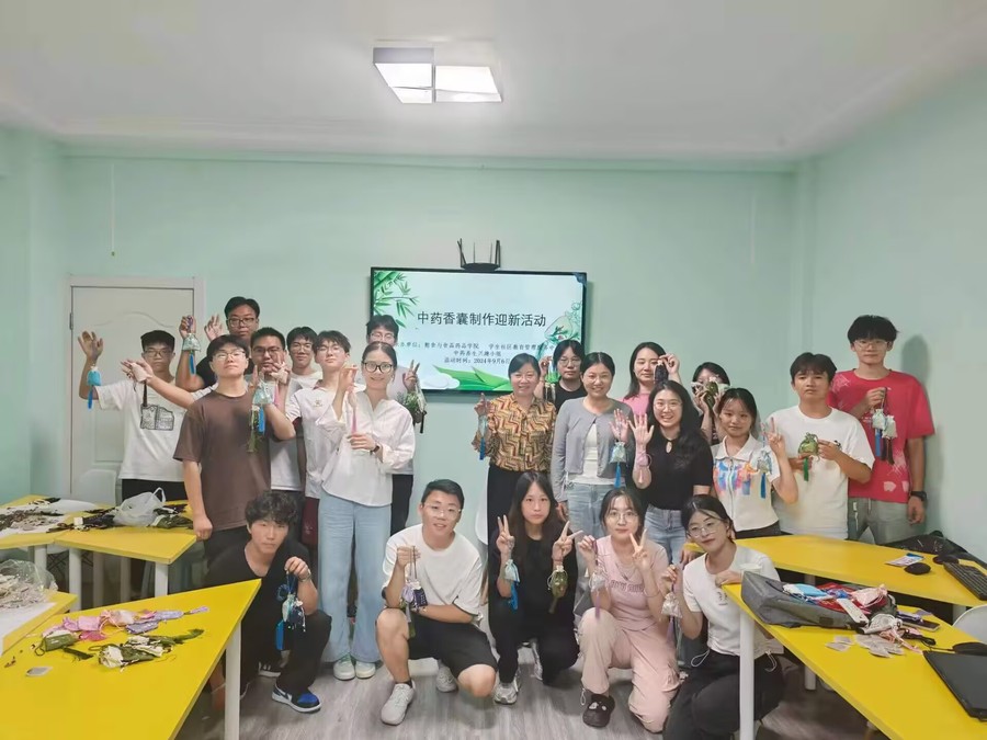 为进一步深入学习贯彻习近平文化思想、弘扬中医药传统文化,发挥劳动育人实效,增进新老生沟通交流,9月6日晚,粮食与食品药品学院携手学生社区教育管理服务中心在西六立德树人会议室合作举办中药香囊DIY制作迎新活动。学生社区教育管理服务中心副主任黄海梅,朱禹璇老师;粮食学院专任教师翁晓滨老师,专职辅导员汤韵慈老师等参与本次活动。