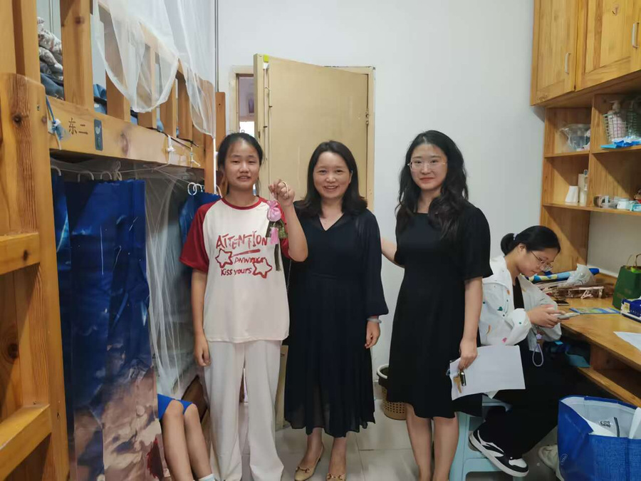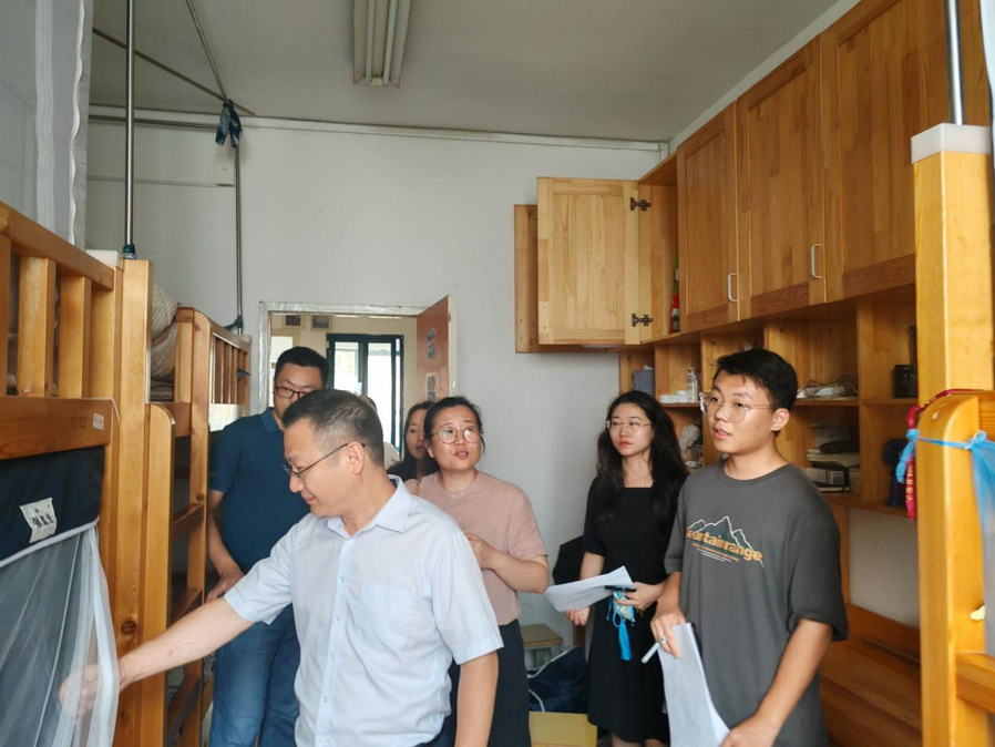 浦海涛带队,先后走访了西三、西四、西六等34间新生宿舍。在走访过程中,浦海涛详细询问了新生的住宿环境、饮食安排和生活所需等方面的情况。田林双对宿舍门窗、床铺、灯具等正常使用进行一一排查,确保给每位新生提供一个温馨舒适的学习生活环境。