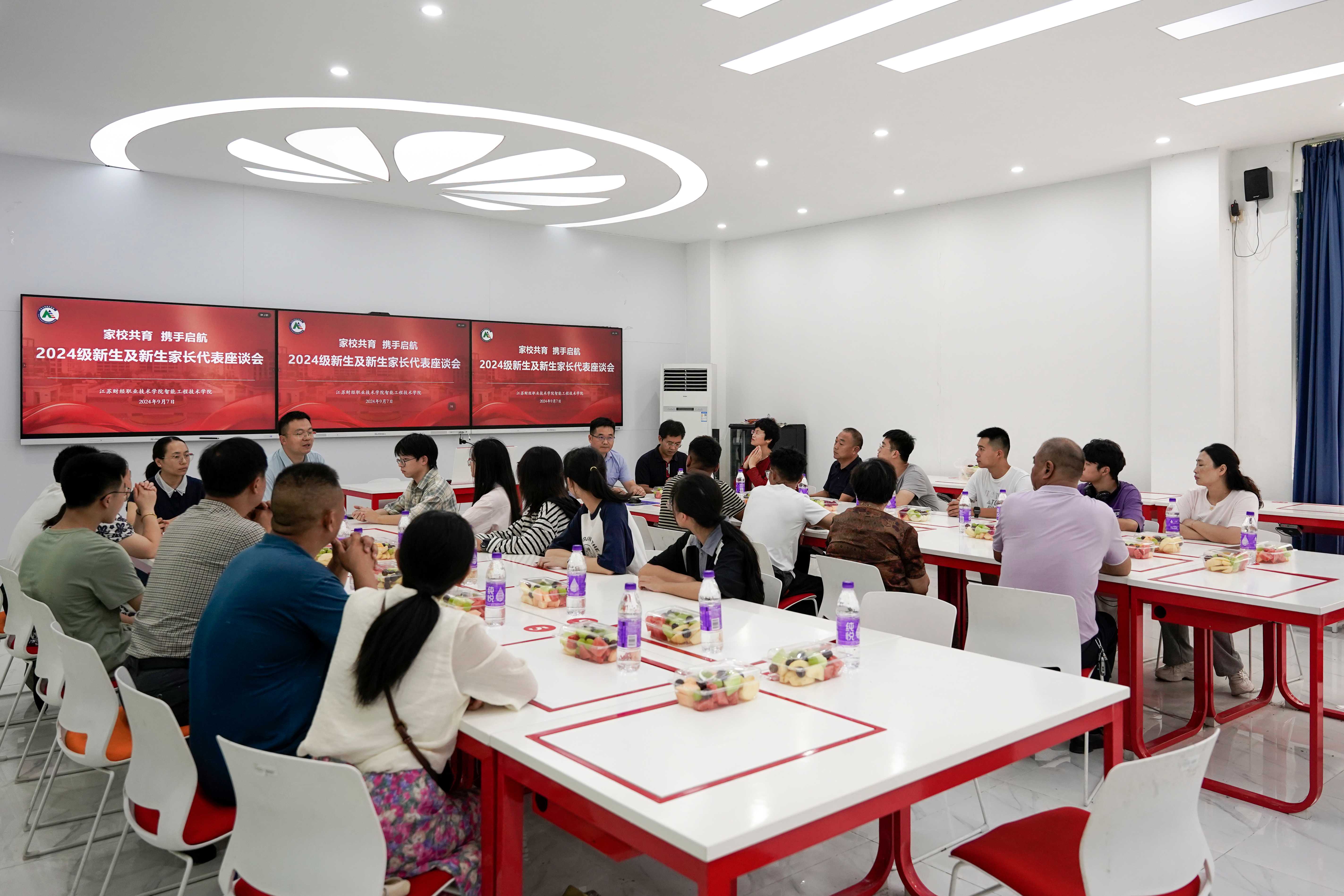 为强化家校共育,助力学生全面发展,9月7日下午1点,学院开展了新生及新生家长代表参观交流活动。智能制造实训中心主任林伟带领大家参观了智能制造实训中心,介绍了不同区域的功能,包括自动化生产线、机器人工作站、3D打印技术等,激发了新生们对未来职业生涯的兴趣和热情。座谈会上,学院院长符学龙详细介绍了学院的历史沿革、办学成果、教育理念、培养目标和学生毕业要求等,希望家长与学校学院加强沟通合作、共同培养学生。交流环节,学院党总支书记嵇正波、副院长干建松、副书记赵林林同新生家长们围绕专业学习、第二课堂、就业转本、入团入党、参军入伍等进行了深入交流,进一步增强了家长们选择智能工程技术学院的信心。