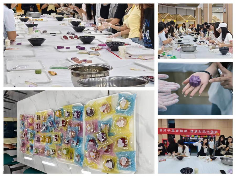本次活动以手作寄情,学院贴心准备了冰皮月饼食材和非遗漆扇材料,同学们都非常兴奋,个个跃跃欲试,大家围站在一起,一边交流讨论,一边发挥想象力动手制作,在欢声笑语、互帮互助中各色各样的月饼和漆扇通过同学们的巧手惊喜呈现出来,别具特色、别样精致。