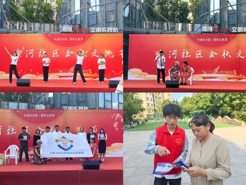 随后,金融学院分团委文艺部带来舞蹈《上春山》,舞者们以优美的舞姿和饱满的热情为祖国母亲献上最真挚的祝福,赢得了现场观众的热烈掌声和阵阵喝彩。紧接着,“金钟罩”防诈骗宣讲团带来《防骗有道,警钟长鸣》防诈情景剧。通过生动的表演,将各种诈骗手段一一呈现,同时传授了防骗知识和应对策略。正是这种“接地气”的表演,让观众在轻松愉快的氛围中提高了防骗意识。除了精彩的文艺表演,文化节还设置了互动环节和展览区。“金钟罩”防诈骗宣讲团为广大居民们发放防诈骗宣讲手册,讲解各种防诈骗知识 ,传授一些实用的防诈骗技巧方法,用实践筑起防诈安全网。